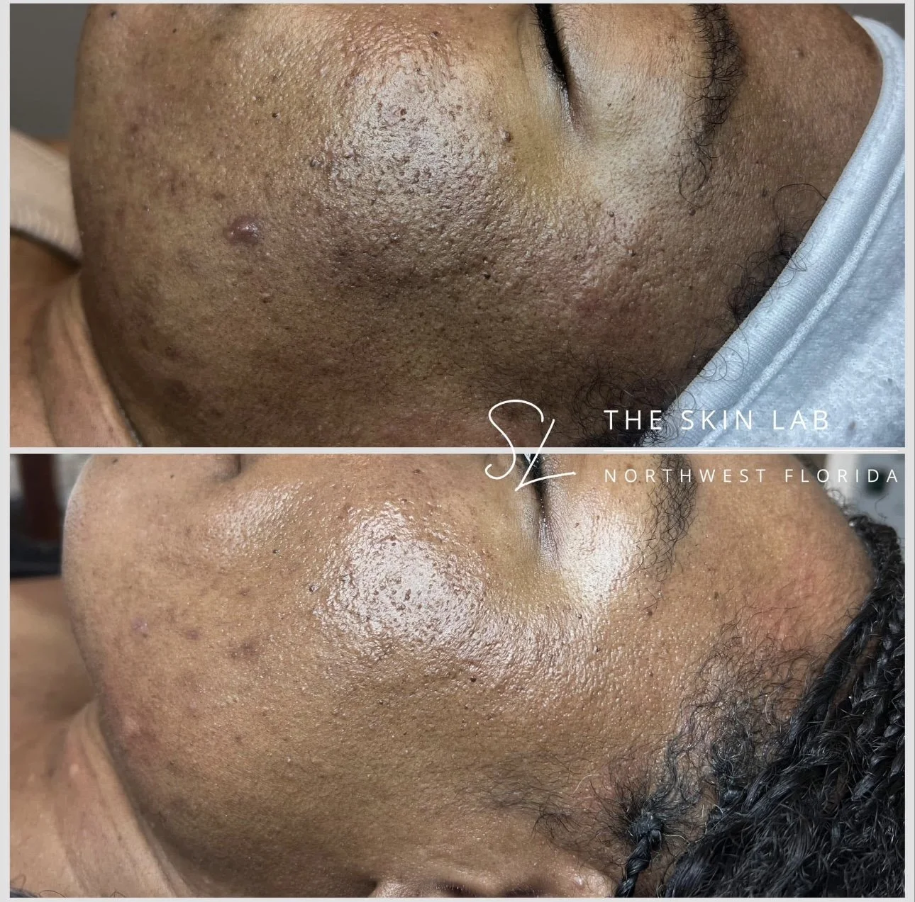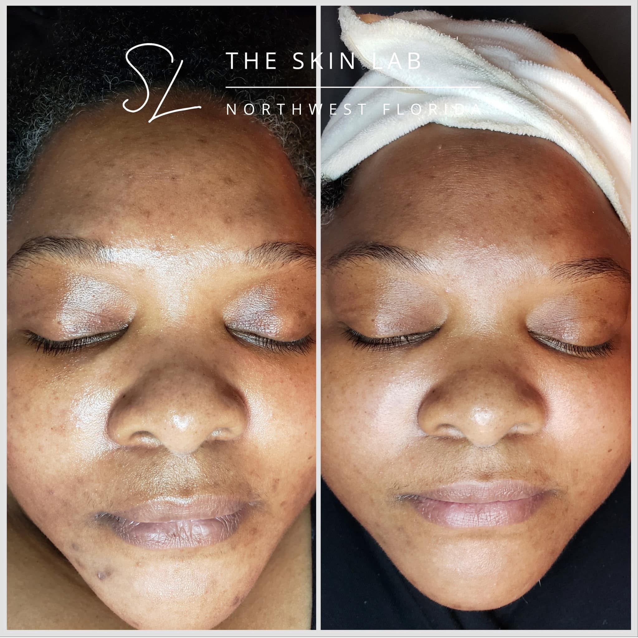 Real results from treatments performed at The Skin Lab. Some images show improvement after a single treatment, while others reflect progress achieved through multiple sessions over time. Variations in lighting may make skin tone appear different between photos, but the client’s natural skin tone has not been altered.